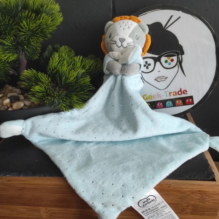 Doudou Siplec Mots D'enfants Leclerc Lion Mouchoir Bleu Pois #geektradedoudou - photo numéro 2