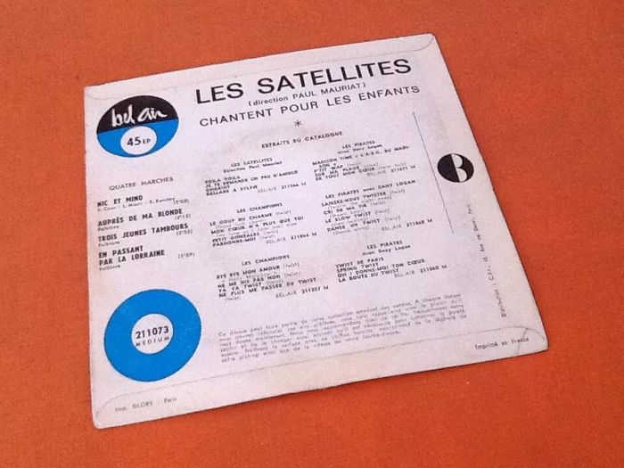 (article vendu en l' état, état d' usage, micro rayures qui n' empêchent pas l' écoute du vinyle, voir toutes les photos) Vinyle 45 tours Les Satellites chantent pour les enfants Direction Paul Mauriat (1962) Bel Air ‎ 211073