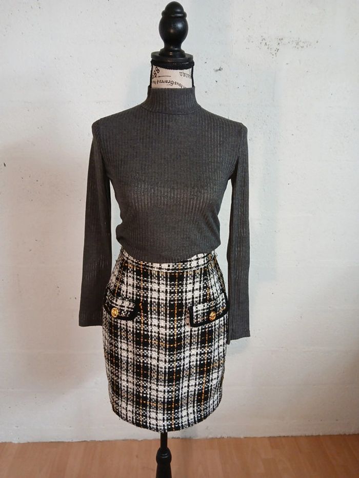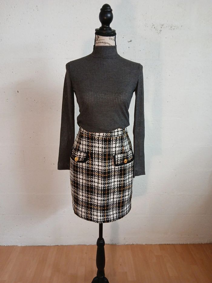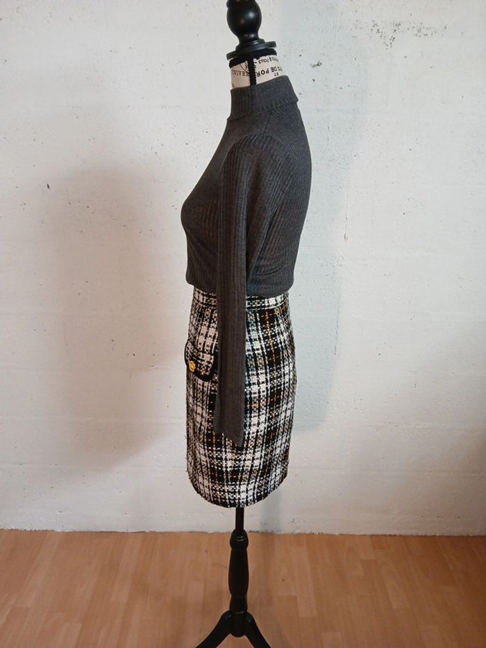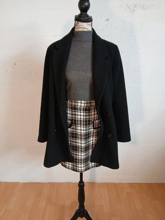 Petite jupe droite Bon état Tissu assez epais, Doublure noire Taille anplat 33 cm Longueur 49 cm Pull gris S Jennyfer et manteau pimkie S A retrouver en vente séparément dans mon dressing. L ensemble jupe, pull et manteau revient à 20 euros , hors réduction de 20%!! Soit 16 euros🤩 Des chaussures sont également disponibles Réduction activée sur les lots des 2 articles 😊