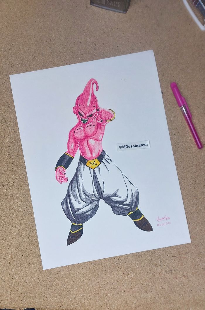 Dessin de Majin Buu Format A4 Fait à la main aux stylos à bille Cadeau idéal pour un fan de dragon Ball Z