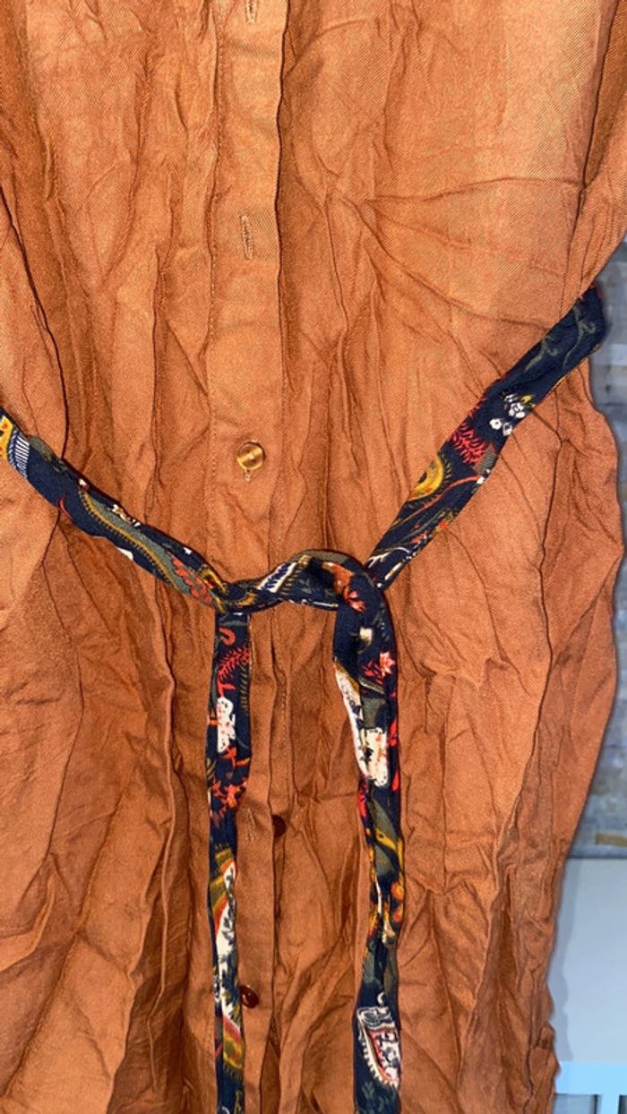 Robe légère se porte au dessus du genou, 2 poches sur face avant. Ceinture à la taille Désolé elle n’est pas repassée 😉