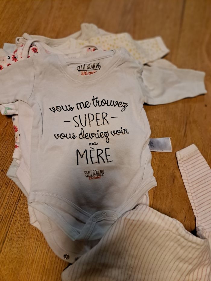Bonjour, je vend lot peux porte part mes jumelles taille 3 mois assez fourni (50 pièces à peut près ) veste très épaisse en laine, veste d'hiver comme neuf Robe, tee-shirts manche longue ,boddy