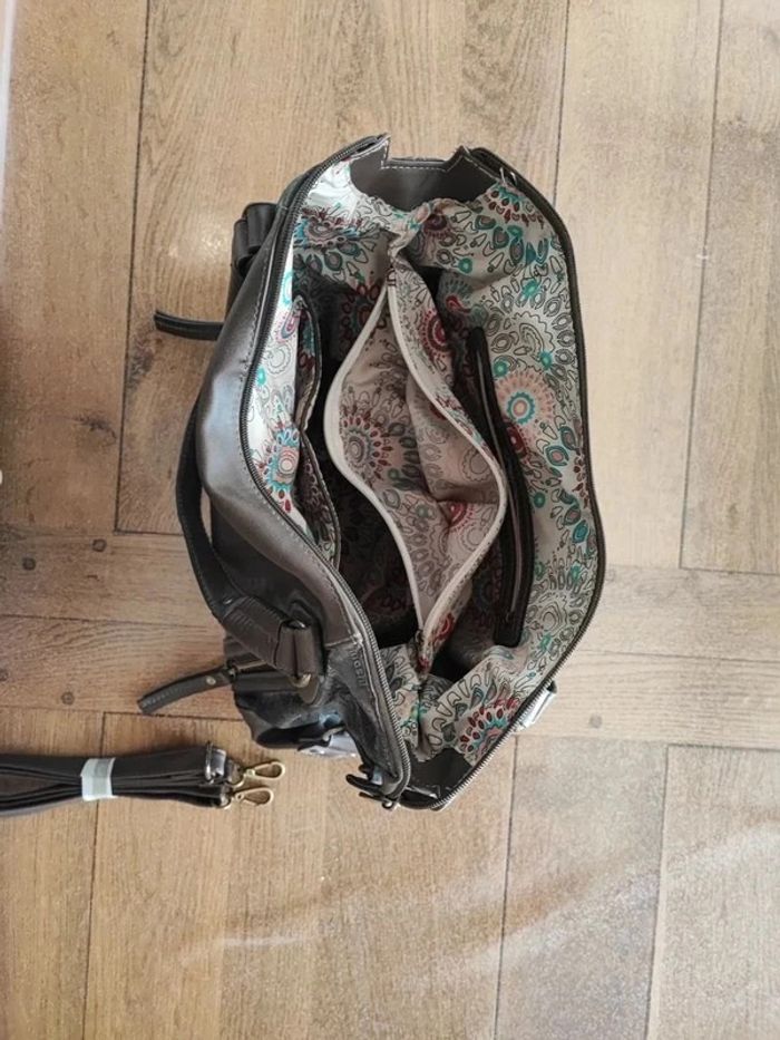 Sac a mains smash marron avec intérieur fleurs :) Multitude de poche SDB