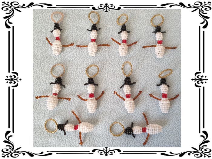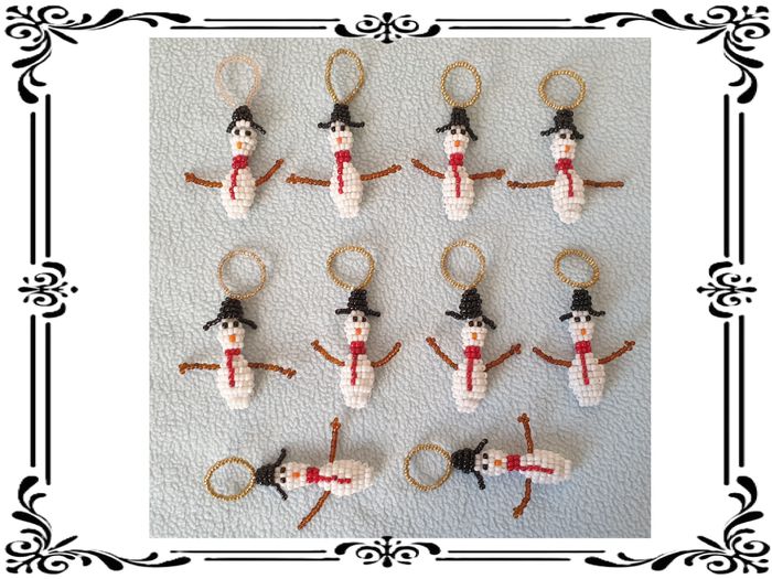 Bonhomme de neige. Bonhomme de neige en perles de rocaille avec boucle pour l’accrocher dans le sapin. Longueur totale : 7 cm Longueur sans la boucle : 4,5 cm J’en ai 10 de disponibles. Le prix indiqué est à l’unité, me contacter avant achat si vous en voulez plusieurs. En très bon état. Fait main. 1,50€. #vero38110decorations