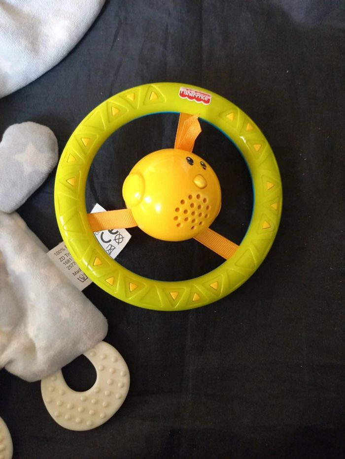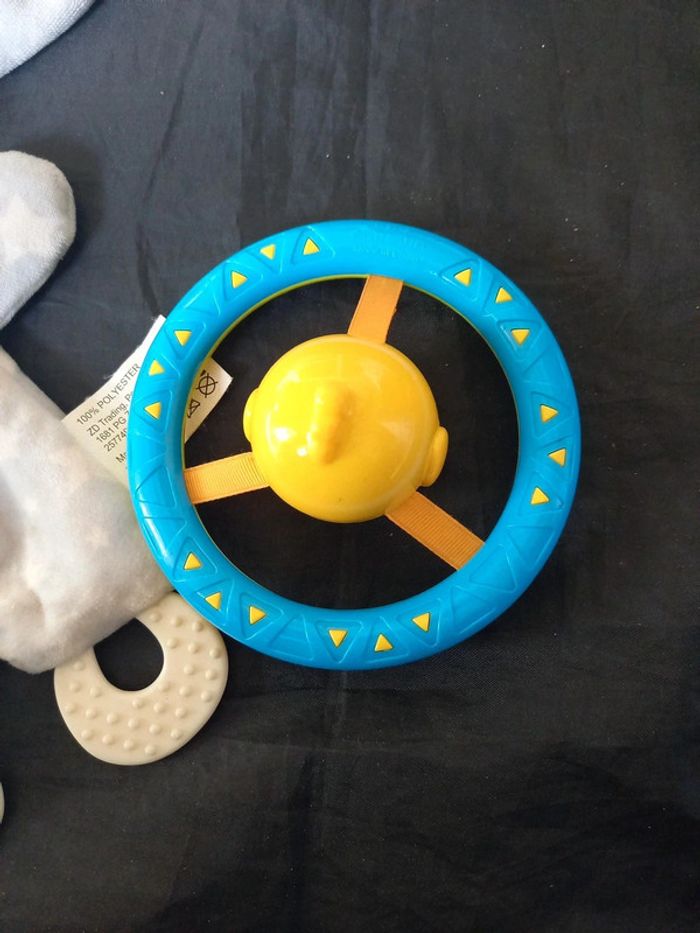 Hochet qui fait du bruit Et doudou avec anneau dentition et qui fait du bruit quand on le froissé