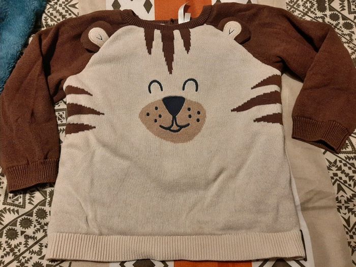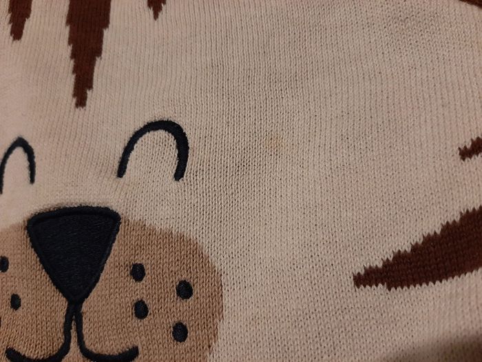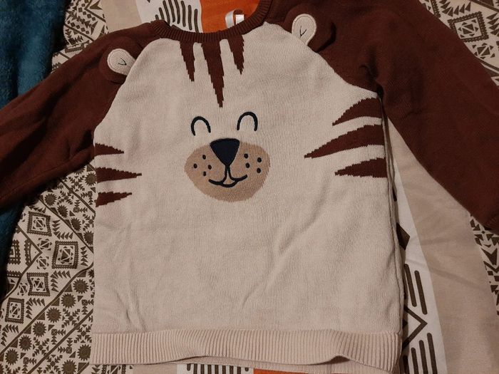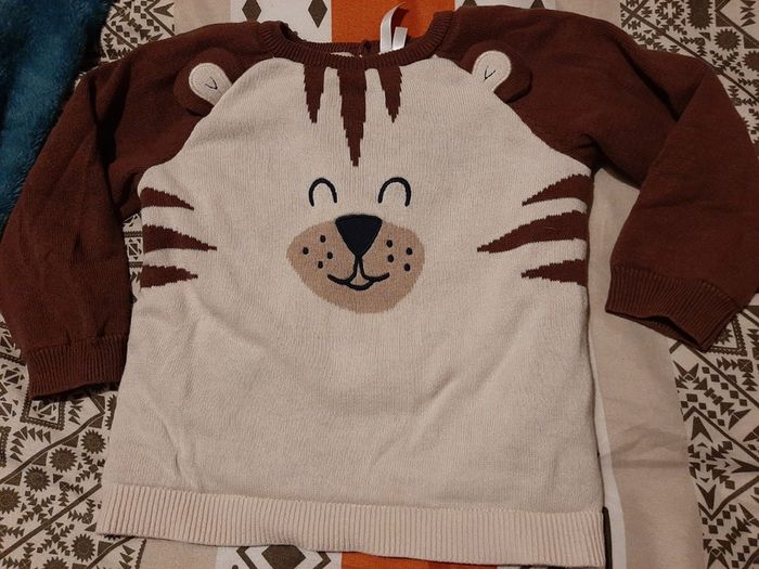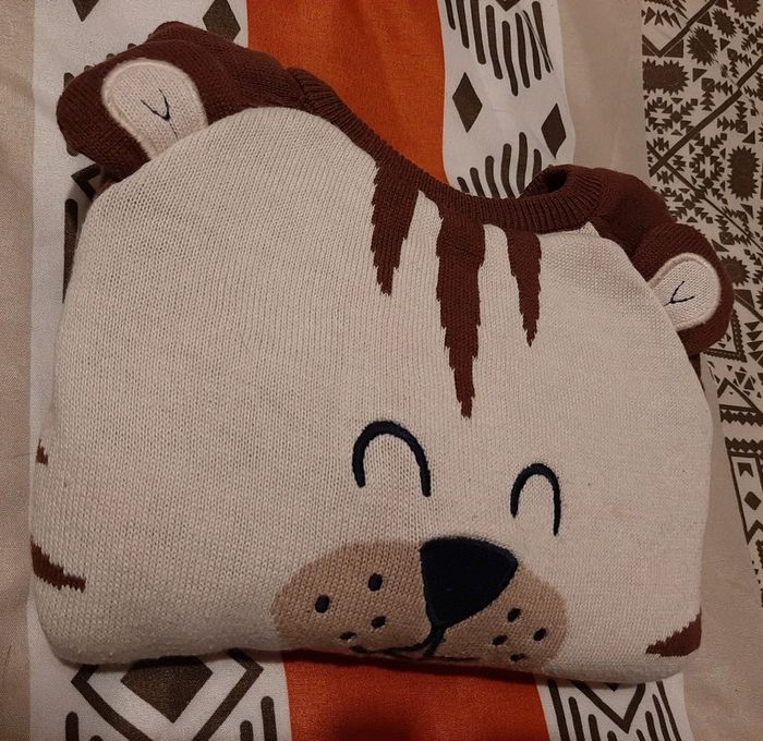 Adorable pull très chaud. Intérieur doublé et extrêmement doux ! Idéal à l'approche des périodes de froid. Motif tigre . 18mois. En très bon état. Juste une mini tâche quasiment invisible à proximité de l'œil du tigre (voir photo 📷) mais il faut vraiment le savoir pour la voir. Vêtement qualitatif. Mixte garçon/ fille. N'hésitez pas à aller faire un tour dans mon dressing de nombreux autres articles à vendre à des tout petits prix et prix dégressif sur les lots 🙂je reste disponible pour toutes questions.