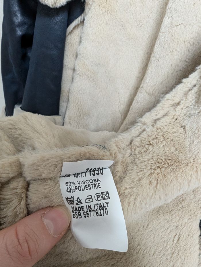Veste bleue et beige en fourrure ultra douce - photo numéro 4