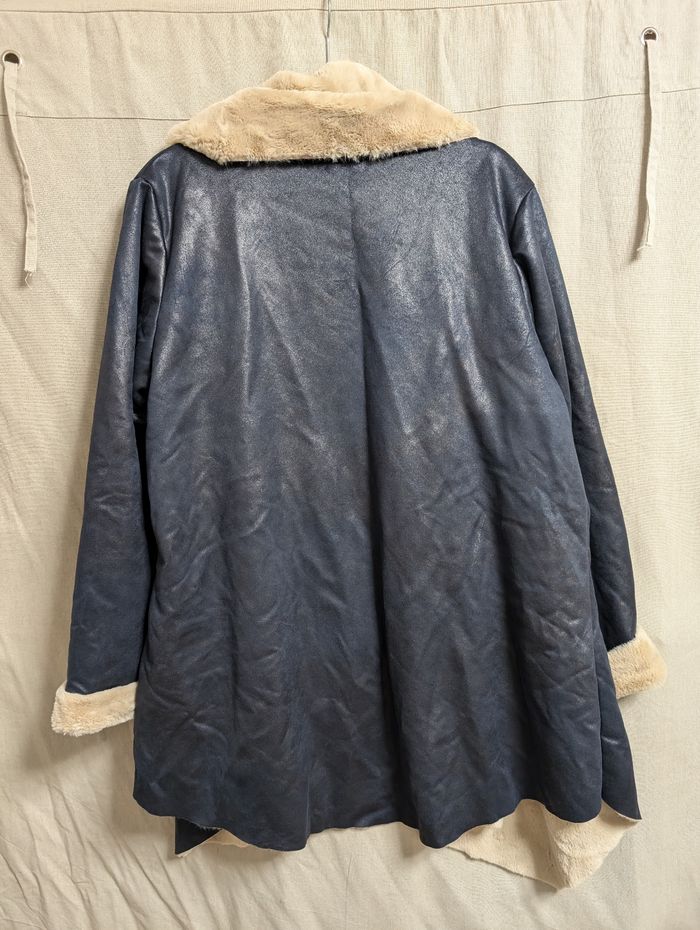 Veste bleue et beige en fourrure ultra douce - photo numéro 3