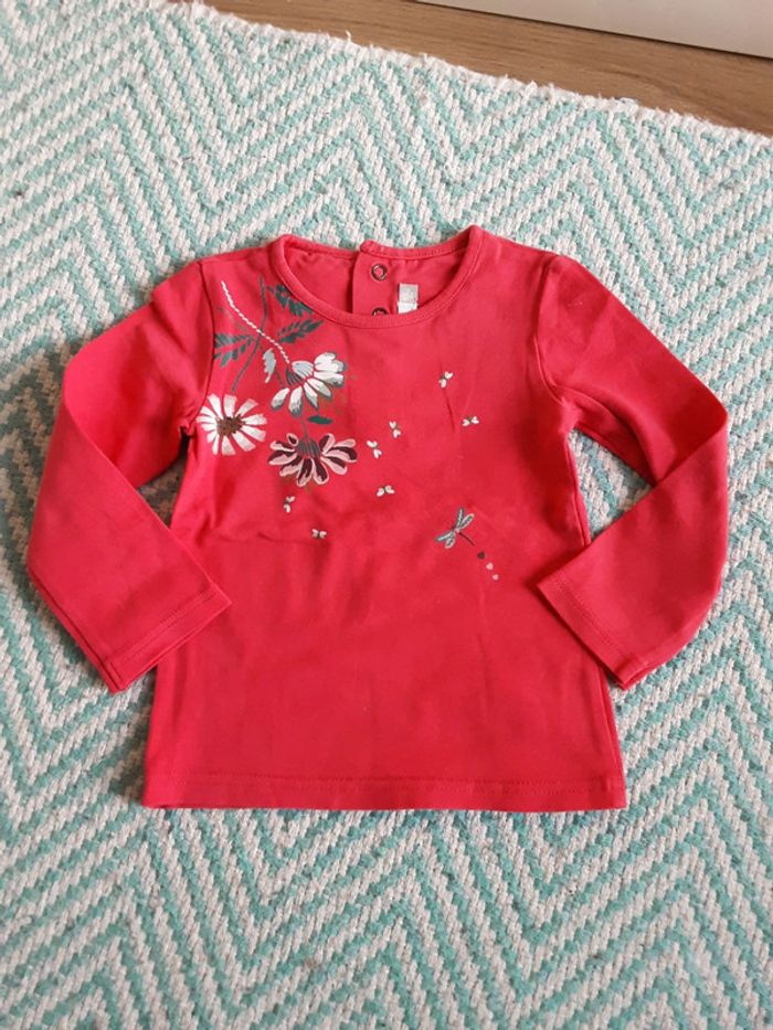 T-shirt sous-pull fleurs et papillons T. 12-18 mois - photo numéro 1