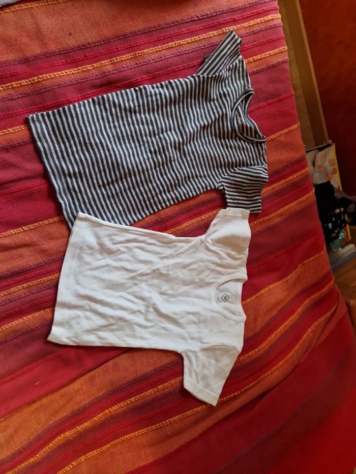 # PAS D EXPÉDITION VIA VINTEDGO # 1 TEE-SHIRT tâche dos Tee-shirt vertbaudet 2 maillot de corps tex 1 pantalon jogging petite tâche voir photo.