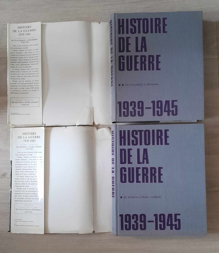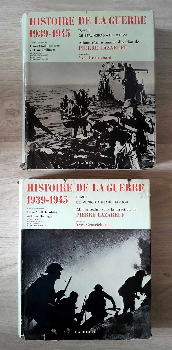 Histoire de la guerre 1939-1945 : tome 1 : De Munich à Pearl Harbor; tome 2 : de Stalingrad à Hiroshima, (2 volumes) - Lazareff Pierre Tome 1 : couverture de protection abimée livre en lui même très bon état 30X25 CM 603 PAGES Tome 2 : couverture de protection abimée livre en lui même très bon état 30X25 CM 548 pages