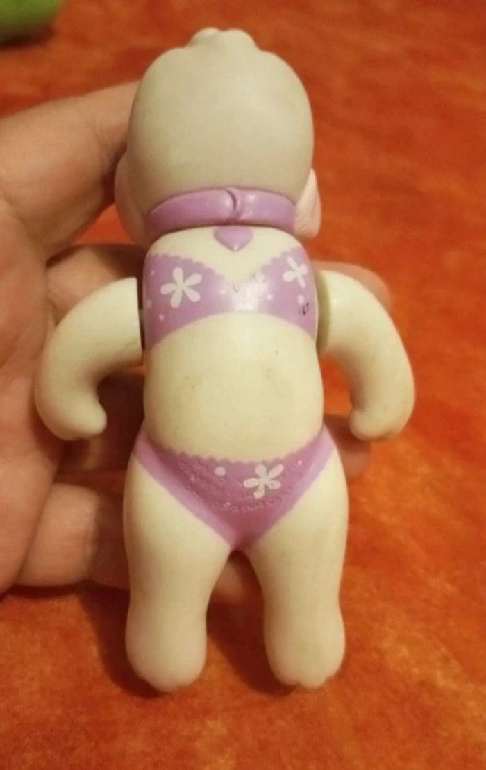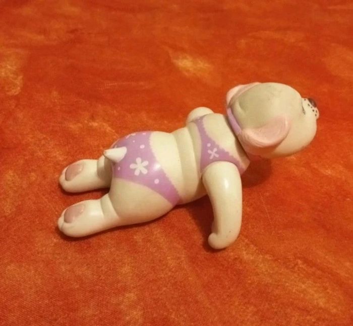 Figurine vintage, année 90, My Tiny Puppy Bathtime, hasbro, chienne en bikini violet Très bon état, avec des traces d'usures et manque de peinture compte tenu de son âge, vendu comme sur les photos. Dans mon dressing, il y a d'autres figurines, des peluches , des poupées, des Disney, des Petshop, des Lego Duplo, des Playmobil, des Barbie et beaucoup de jeux et jouets vintage