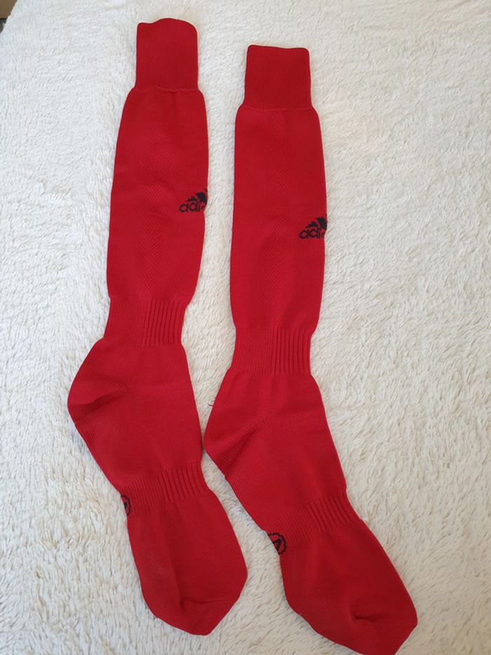 Chaussettes de foot Homme rouge Taille 43/45 Adidas Logo Adidas sur les tibias Jusqu'aux genoux Portées une fois, en très bon état uniquement quelques bouloches et le haut de la chaussette ou il y a un fil tiré (défaut non remarqué à l'achat) Pour accéder rapidement au dressing homme : #shoealacreme_dressinghomme #shoealacreme_dressingHsport