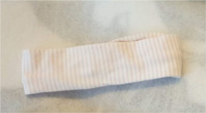 Bandeau noué rayé blanc et rose clair Taille 3-6mois Kiabi Bandeau : - noué rouge à l'avant - couleurs : rayé blanc et rose clair - longueur à plat : 15cm Neuf, lavé mais jamais porté Prix d'achat neuf 3€