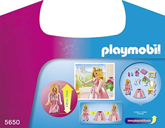 Playmobil - 5650 Valisette Princesse Quelle coiffure la princesse va choisir ? Une princesse bien coiffée c'est une princesse qui sera sûr de se marier avec un prince charmant bien élevé ! Vous êtes intéressé par plusieurs produits, n’hésitez pas à nous contacter pour réduire les frais de port Ne convient pas aux enfants de moins de 4 ans, à utiliser sous la surveillance d'un adulte !