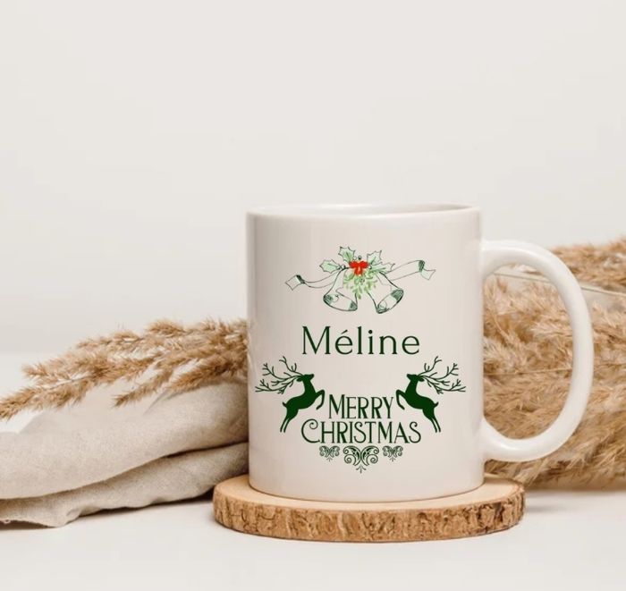 Tasse personnalisée Thème Noël + un prénom Possible d'ajouter un texte ou le modifier