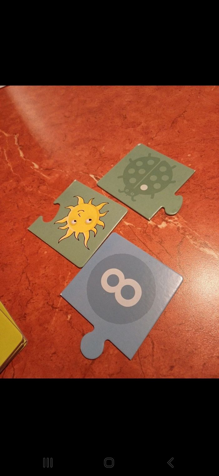 Jeu qui éveille la curiosité et développe le langage et la mémoire. Permet de découvrir les chiffres de 1 à 10 en associant le chiffre à une image. En très bon état, seules 3 cartes ont un défaut dans un coin ( voir photo ) . A partir de 3 ans