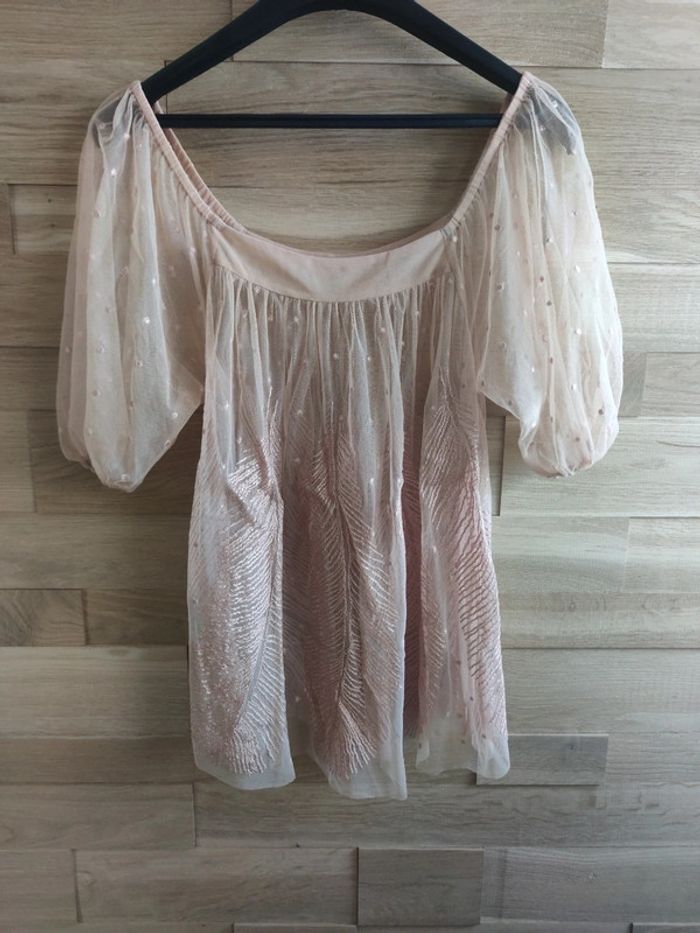 Jolie blouse vieux rose en voile transparent en taille 38 se porte ample Article vintage #JLA38