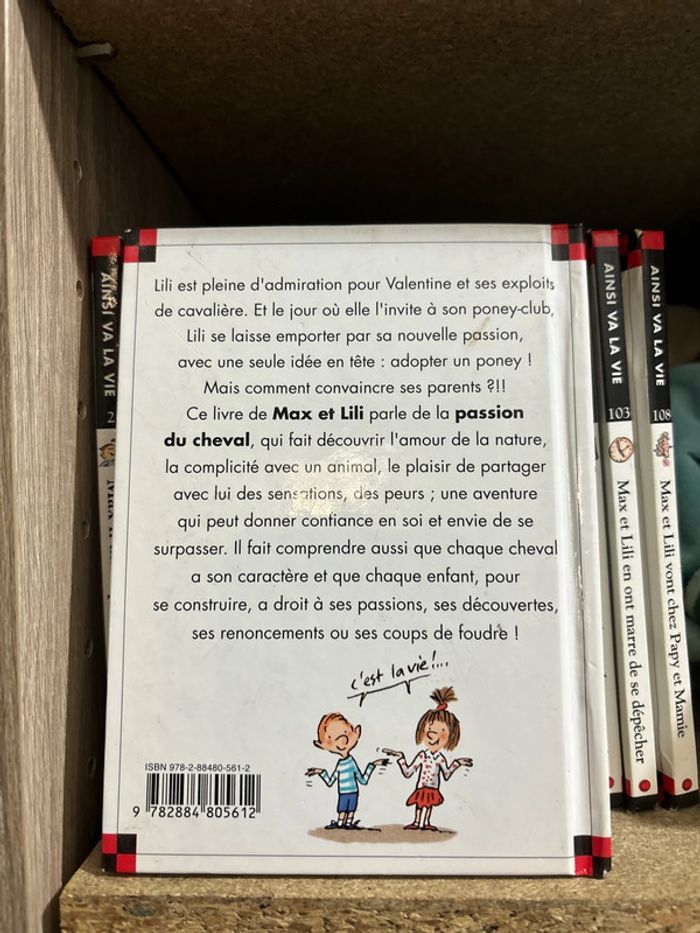 Livre Lily à la passion du cheval N hésitez pas à aller voir les autres livres pour enfant dispo en cliquant ici: #clochettelivreenfant ou uniquement max et Lili en cliquant ici: #clochettemaxetlili Également dispo: tchoupi , peppa pig, Juliette, max et Lili, Disney, petit loup petit garçon, Martine Les livres sont d occasion donc peuvent avoir quelques traces d usure