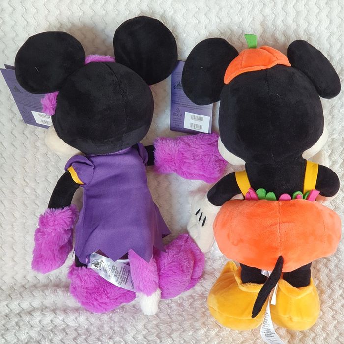 Lot de 2 Peluches Disneyland paris Halloween 🎃 prix non-négociable Mickey Citrouille et Minnie chat mauve 💖 Neuf avec étiquette collection juste exposés