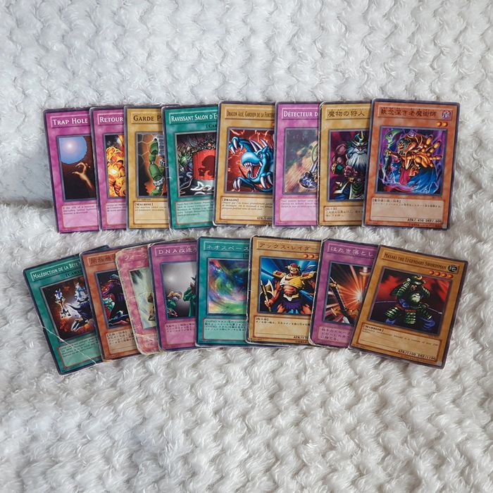 Lot carte Yu-Gi-Oh - Masaki Le Spadassin Légendaire 1996, laissez tomber drop off, ace raider, puissance du duelliste, dna surgery, geno virus infecte tribu, malediction de la bête masqué, vieux magicien vindicatif, kojicoky, detecteur de métaux, dragon ailé gardien de la forteresse, ravissant salon d'essayage, garde puissant, retour de flamme, trap hole Yu-Gi-Oh!