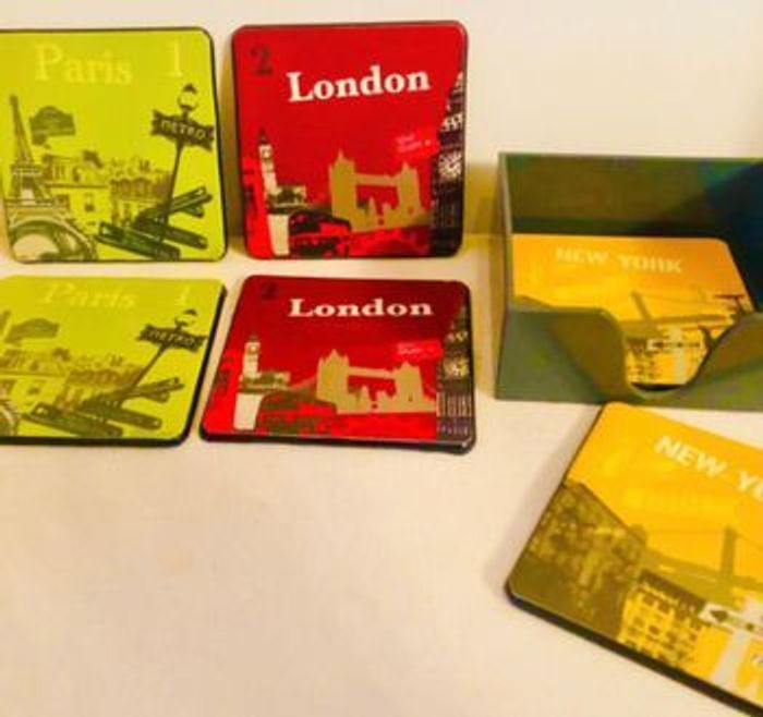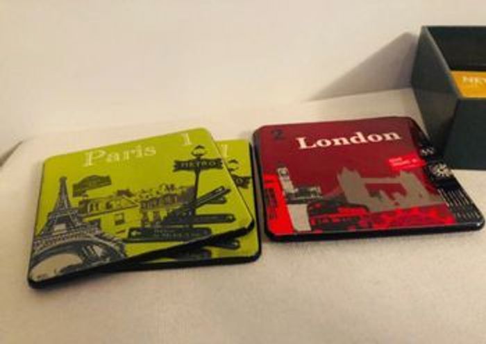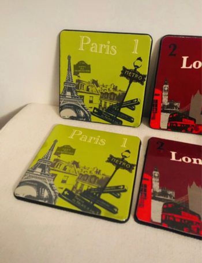 Achat aujourd’hui ? 👉🏻 Départ du 📦 demain ! Ensemble de 6 set de verre esprit loft Marque: maisons du monde Décoration de table Paris, new-york, london Avec support rangement Jaune, vert et rouge Mot clé: City urban urbain style Londres capitale détente deco ville grosse pomme coloré colours Retrouvez tous les produits décorations et accessoires cuisines que je vends : #decomg
