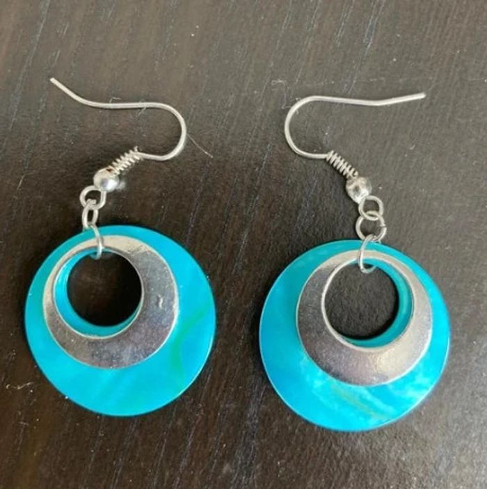 Boucles d'oreilles pendantes bleutés et argentés etam