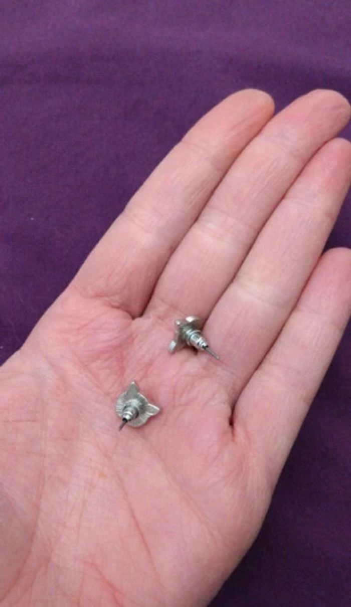 Petites puces boucle d'oreille argentée chat - photo numéro 2
