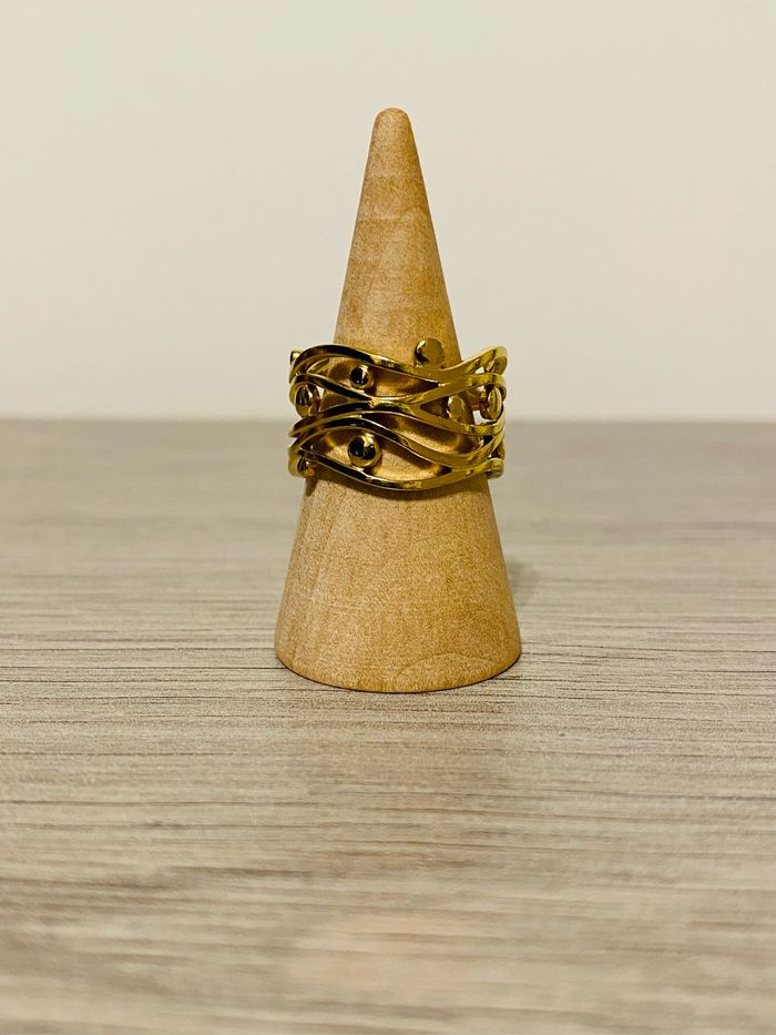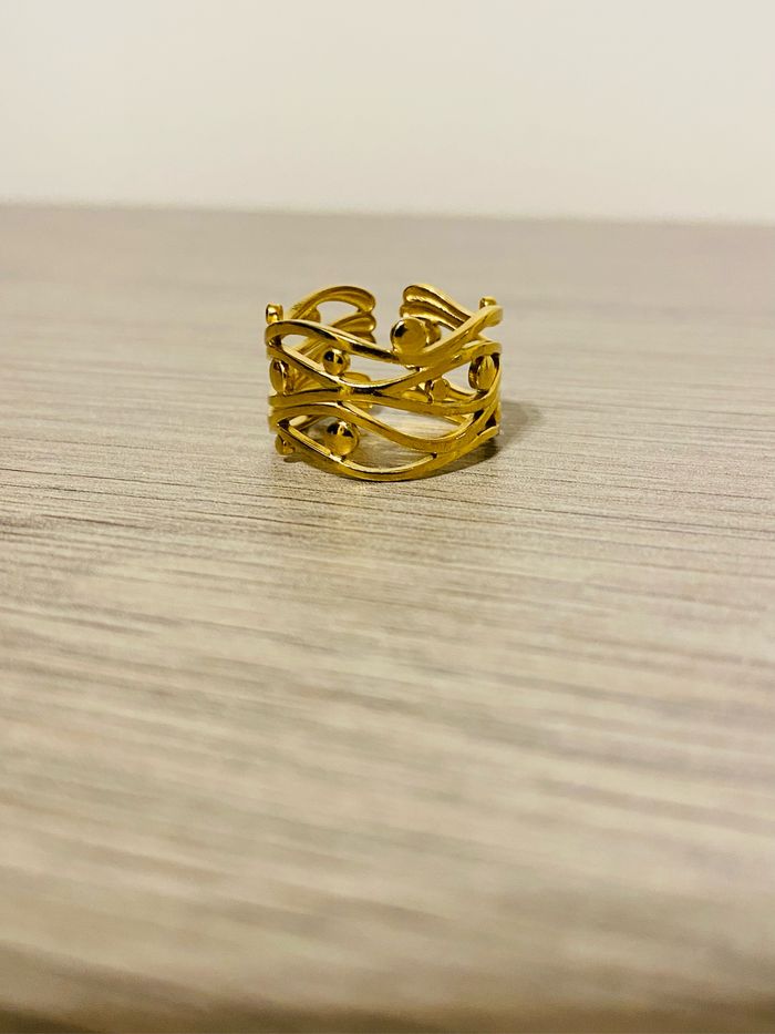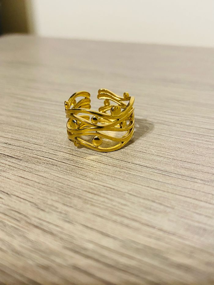 Bague épaisse ajustable doré originale torsadée acier inoxydable - photo numéro 1
