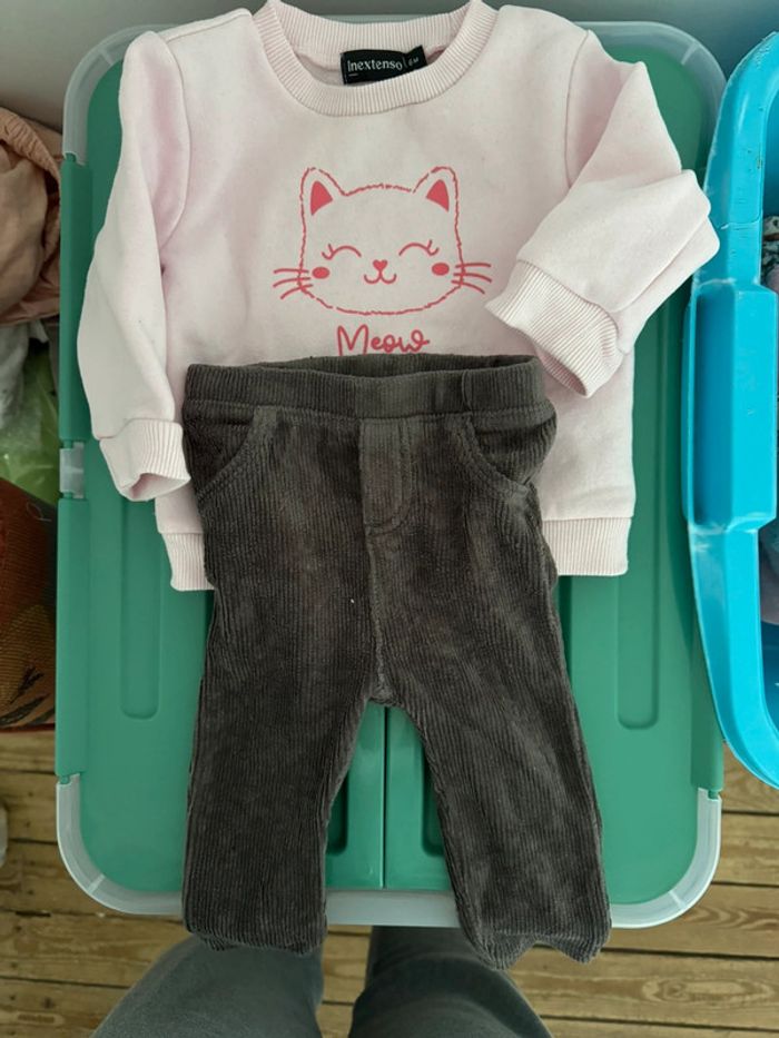 Ensemble bébé In Extenso 6 mois Bon état, juste une légère tâche qui est restée au lavage mais avec un bon détachant devrait partir, moi je ne l’avais pas vu😂