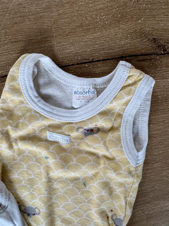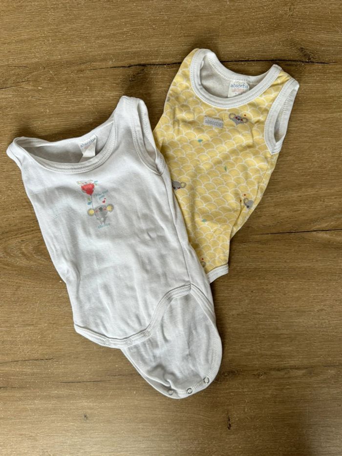 Deux bodies débardeurs de la marque Absorba. Taille 3 mois. Très bon état. Mixte. N’hésitez pas à acheter en lot pour plus de remise!
