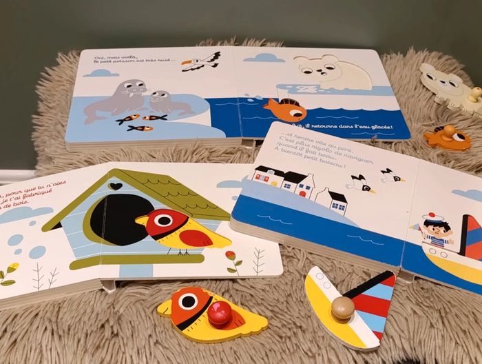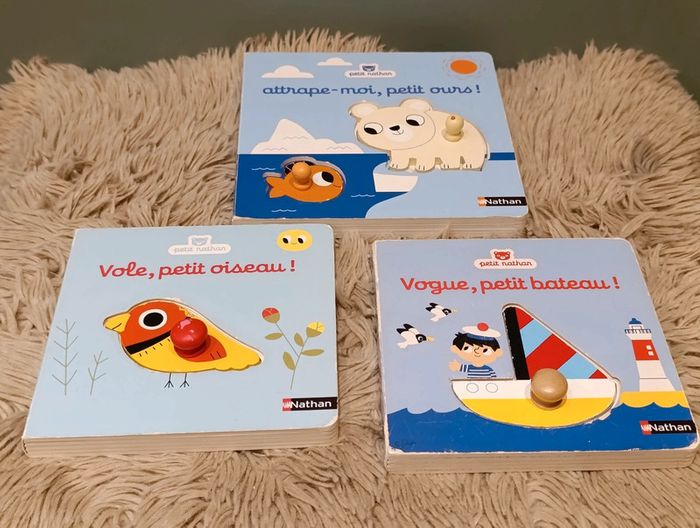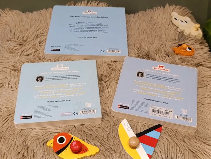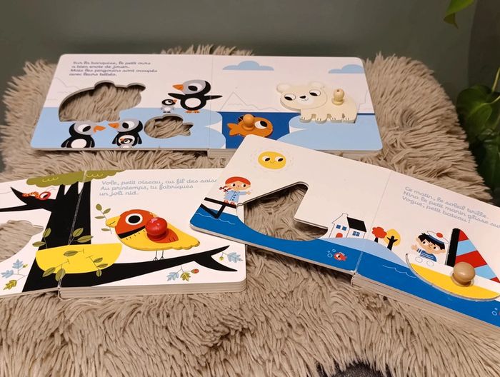 Lot de 3 livres puzzle Vole, Petit oiseau !🐦 Attrape-moi, petit ours ! 🐻 Vogue, petit bateau ! ⛵ Petit Nathan Dès 10 mois Couverture un peu abîmée et la peinture à sauté sur les pièces en bois. Intérieur très bon état A l'unité également dans mon dressing Prix d'achat entre 16 et 12€ pièces #liibylivres #liibyjeux #livre #premierage #bois #bebe #petitnathan