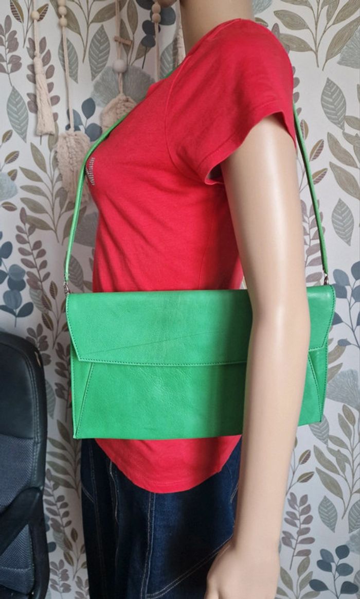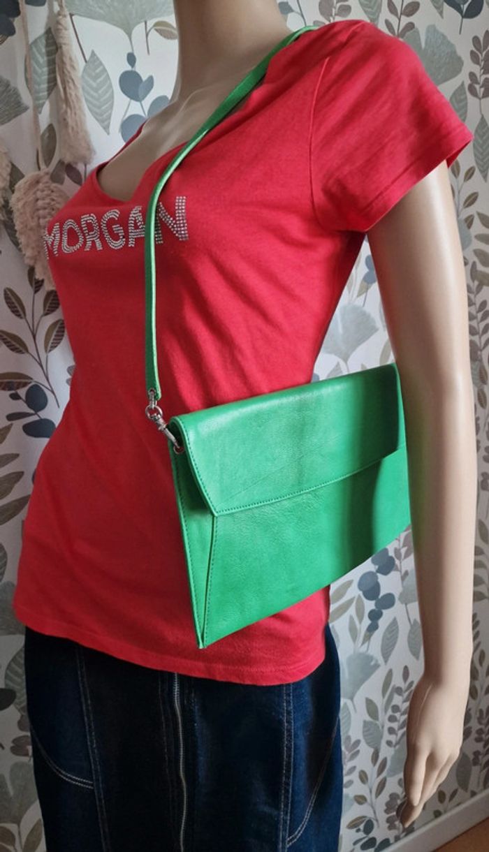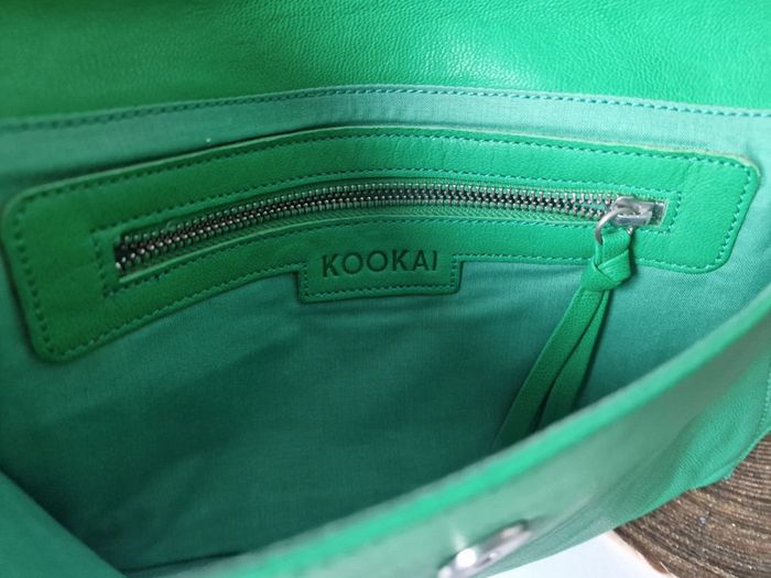 Sac à main en cuir agneau vert KOOKAI 30.5 x 19 cm Grosse griffes voir dernière photo