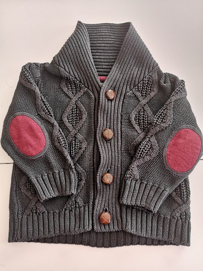 Gilet gris et coudes Bordeau 18mois Marque kiabi Très bon état