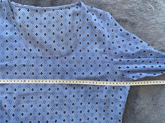 ❄️ Très bon état ❄️ Blouse ❄️ Couleur : Bleu, noir, blanc ❄️ Taille M (38) ❄️ Un peu transparent ❄️ Matière : Sans étiquette ❄️ Longueur : 61 cm ❄️ Aisselles à aisselles : 50 cm 👚 Dressing trié : #cortezwayfemmetaille38 #cortezwayblouse Négociable