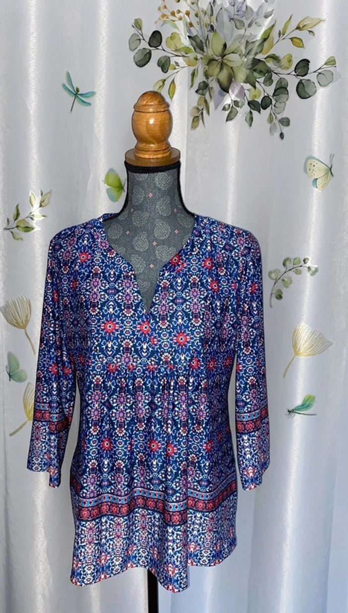 ❄️ Très bon état ❄️ Haut : Bleu, blanc, rouge ❄️ Couleur ❄️ Taille L (40) ❄️ Matière : 6% Elasthanne 94% Polyester ❄️ Longueur : 63 cm ❄️ Aisselles à aisselles : 50 cm 👚 Dressing trié : #cortezwayfemmetaille40 #cortezwayhaut Négociable