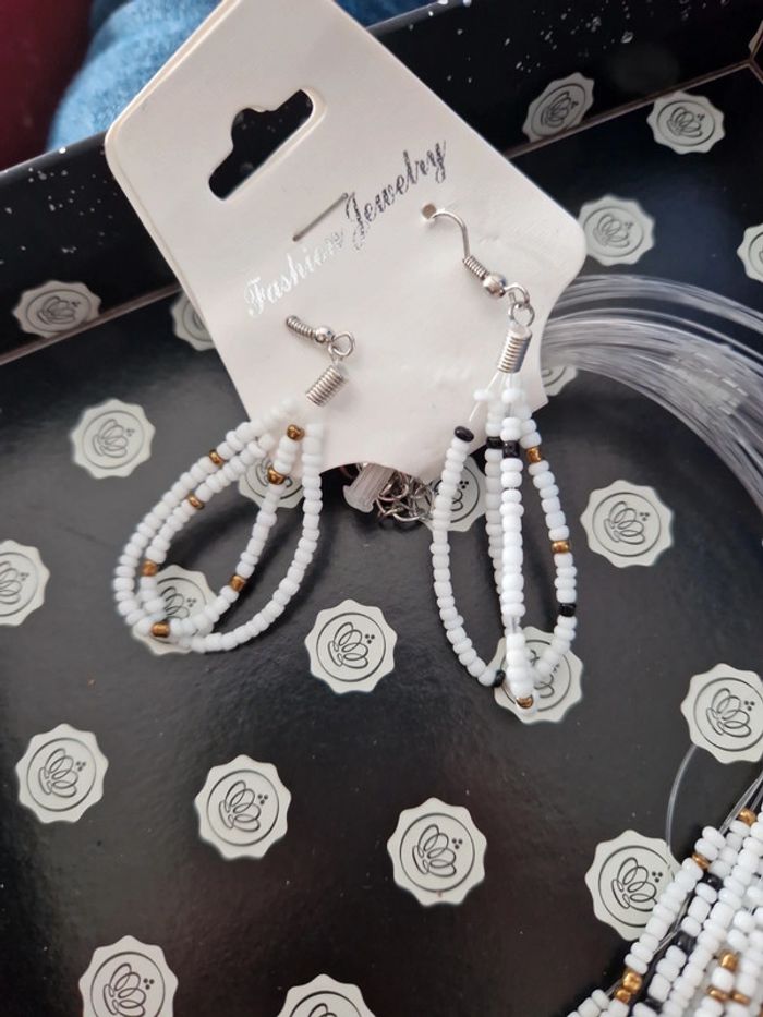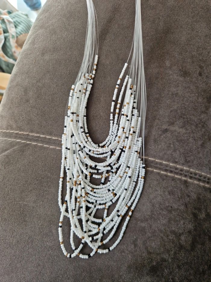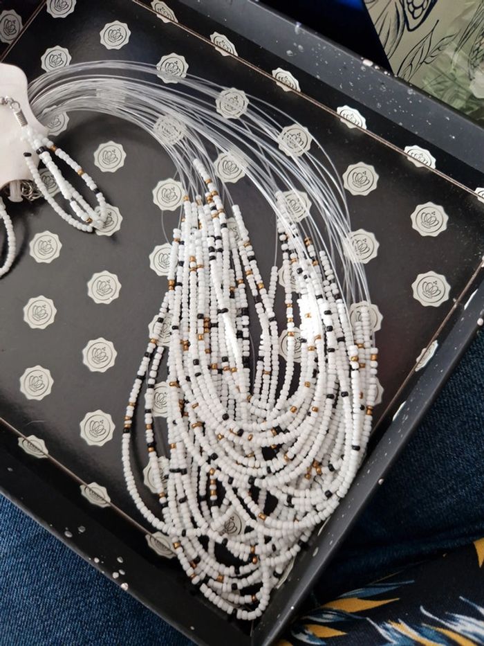 Collier et boucle d'oreille blanc multi-couche blanc
