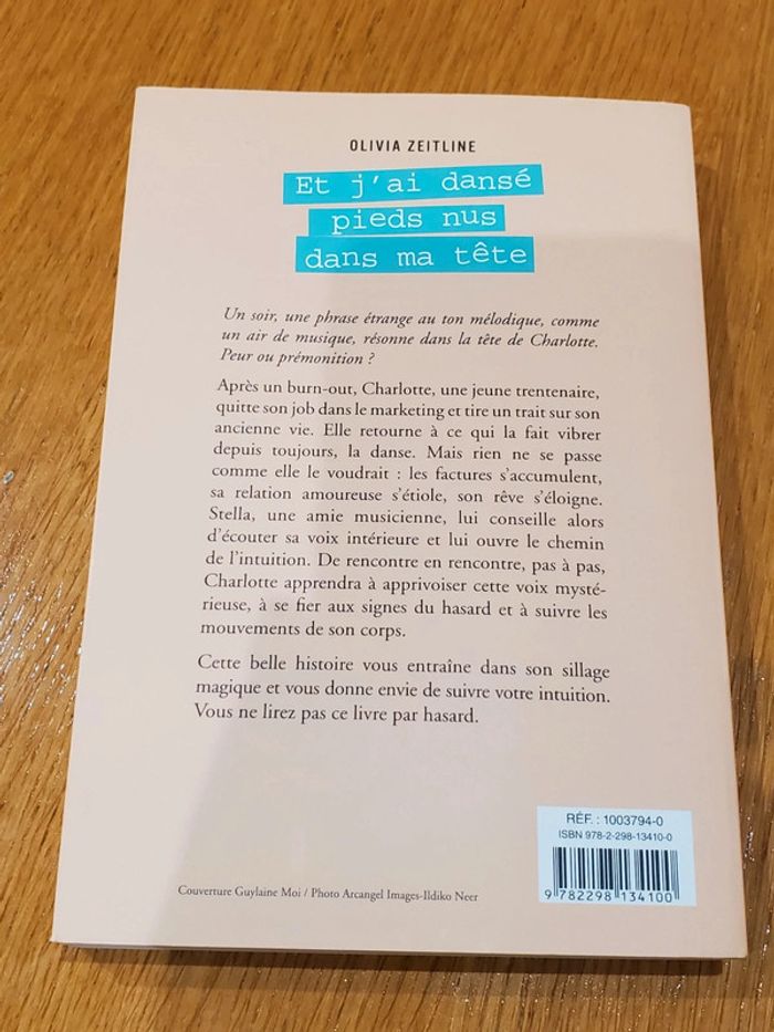 Livre Et j'ai dansé pieds nus dans ma tête d'Olivia Zeitline Après son burn-out et son changement de vie, Charlotte pensait en avoir fini avec les problèmes. Mais les élèves se font rares à son cours de danse. Les factures s'accumulent. Et les choses ne s'arrangent pas avec Tom. La lumière viendra d'une vieille amie violoncelliste : l'accord parfait ne s'atteint pas sans fausses notes. La solution ? Suivre son intuition. Lui parler. Écouter les signes du destin. Alors seulement, Charlotte sera capable de trouver sa voie, SA voix, cette petite musique sur laquelle danser la vie...