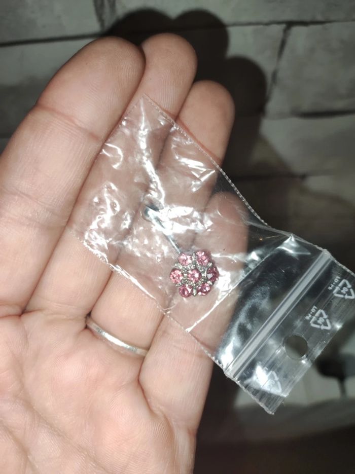 Piercing de nombril motif fleur rose - Acier chirurgical - Neuf - photo numéro 2