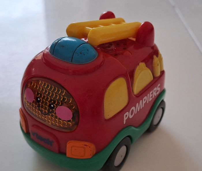 Un bouton lumineux en forme de visage rigolo déclenche 3 chansons, des phrases et des effets sonores réalistes. #fampacrlt_jouets