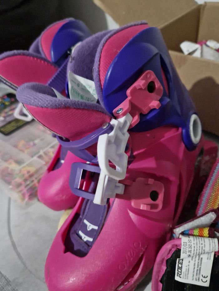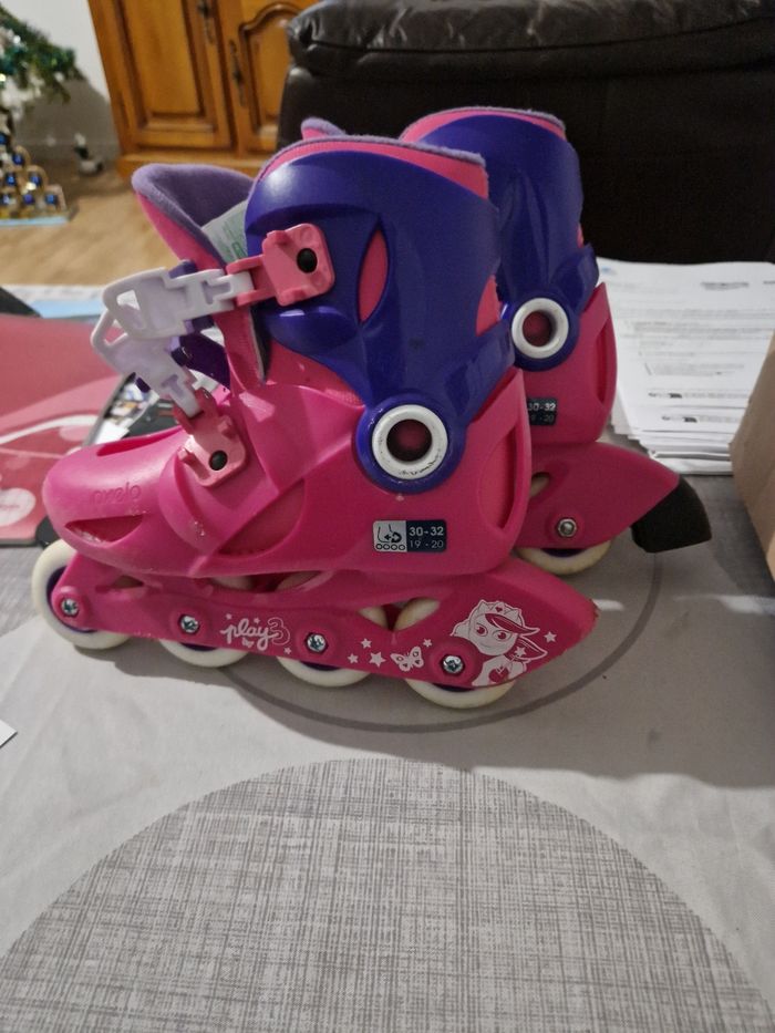 Rollers fille 7 8 ans avec toutes les protections quelques traces d'usure mais très peu servis