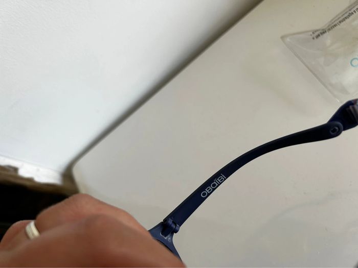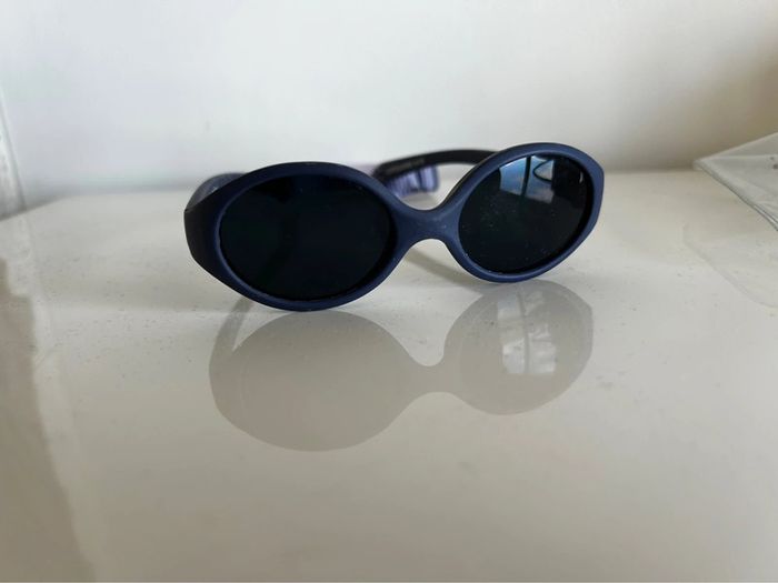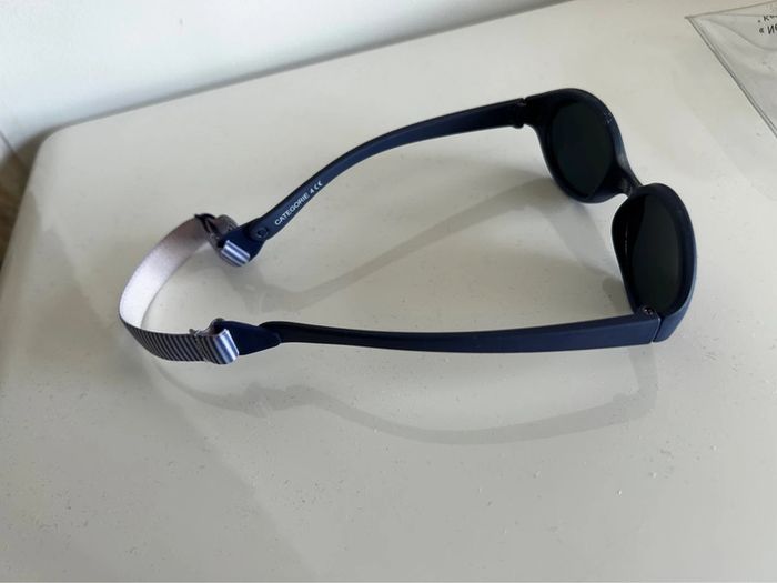 Lunette de soleil bleu marine avec élastique pour ne pas qu’elle tombe . Vendu avec la pochette Catégorie 4 Obaibi