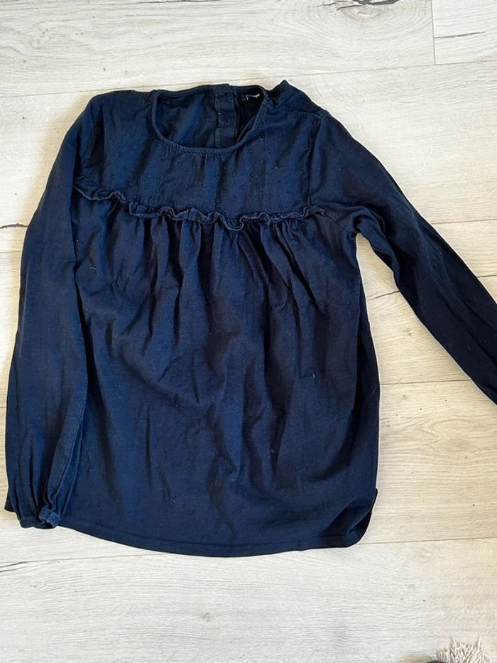 Blouse - tee shirt a manches longues , petit volant devant Bleu marine 12 ans #12ansfillealexiaguillou2206