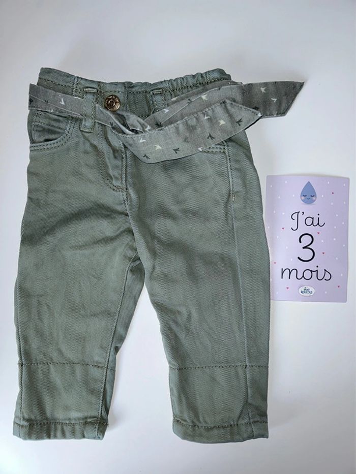 Jean kaki , ceinture en tissus . Réglable à la taille Tape à l œil 3 mois #3moisfillealexiaguillou2206