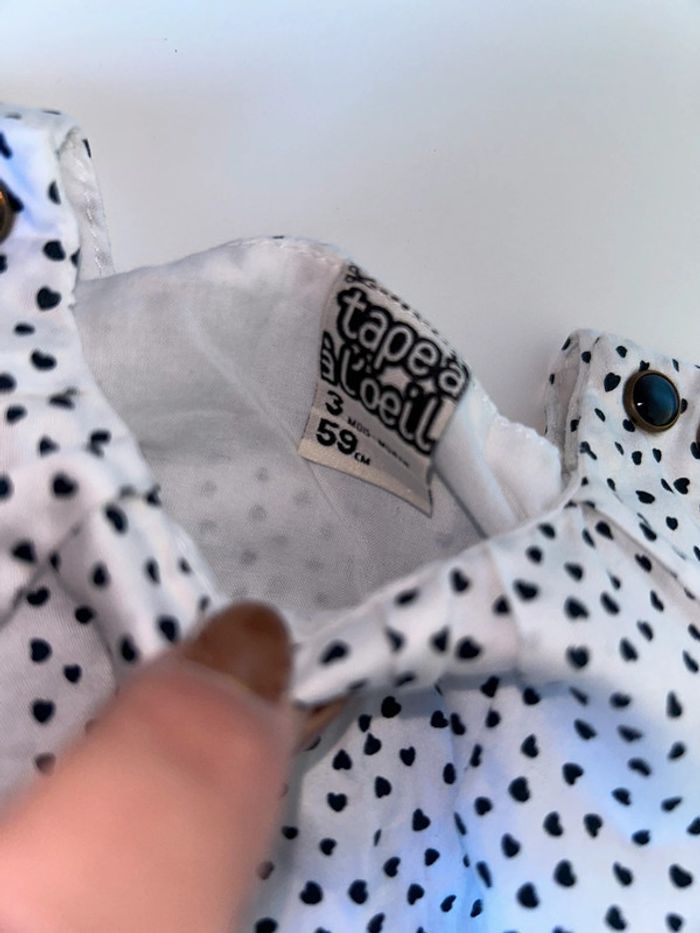 Blouse blanche avec petits cœur bleu marine . Bouffante en bas Tape à l’œil 3 mois #3moisfillealexiaguillou2206