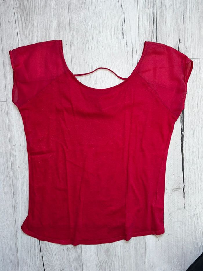 Tee shirt rose manches courtes. Tissus rose transparent sur les épaules . Marque : nafnaf Taille : 36 - S #36femmealexiaguillou2206