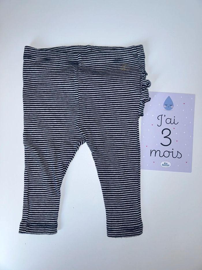 Legging rayé bleu marine et blanc , froufrou derrière Petit bateau 3 mois #3moisfillealexiaguillou2206