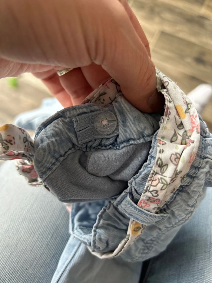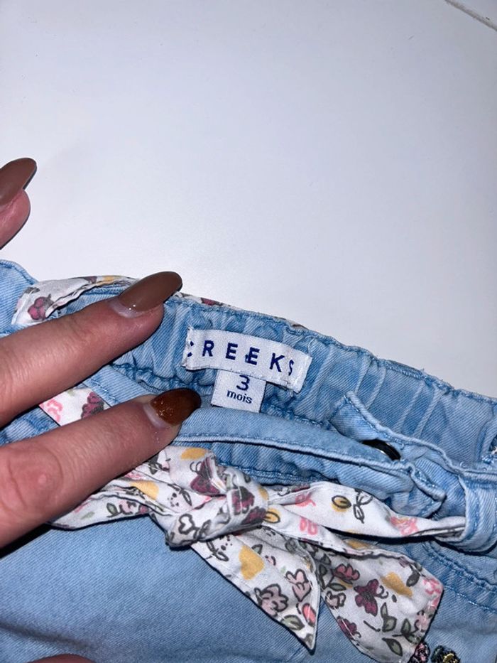 Jean bleu clair , ceinture en tissus fleuri Réglable à la taille Creeks 3 mois #3moisfillealexiaguillou2206