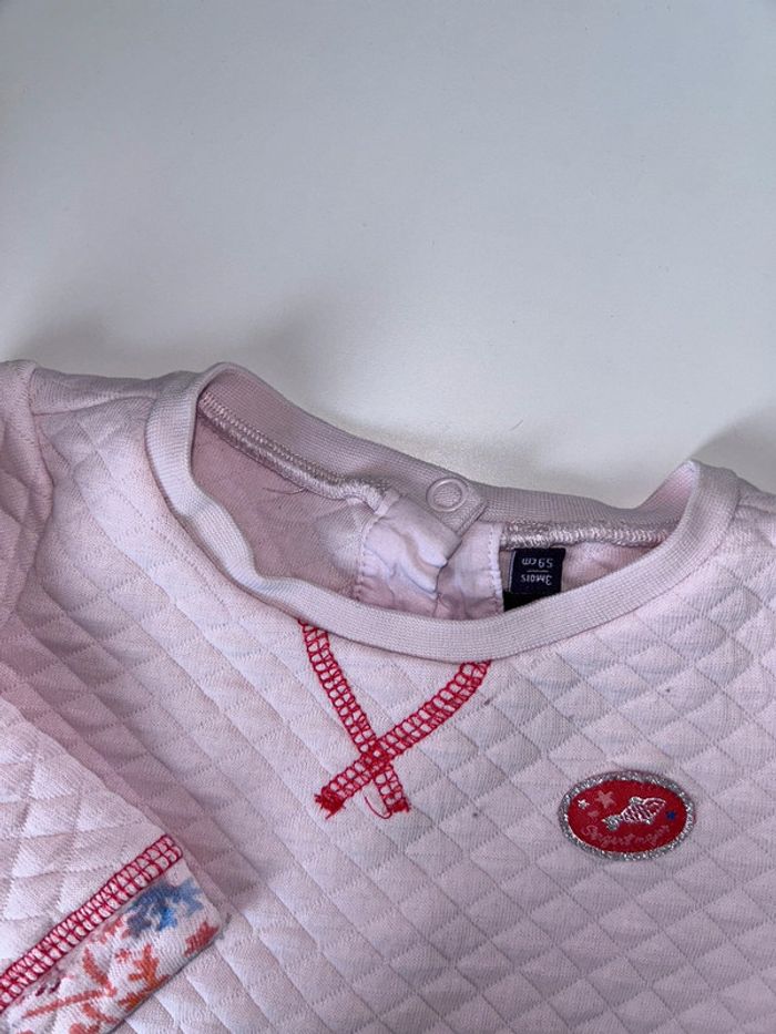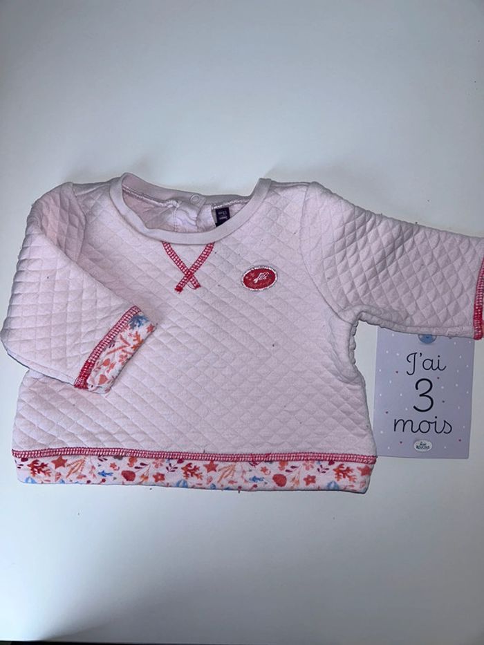 Sweat rose clair effet capitonné . Bas du pull et bas des manches fleuri Sergent major 3 mois #3moisfillealexiaguillou2206
