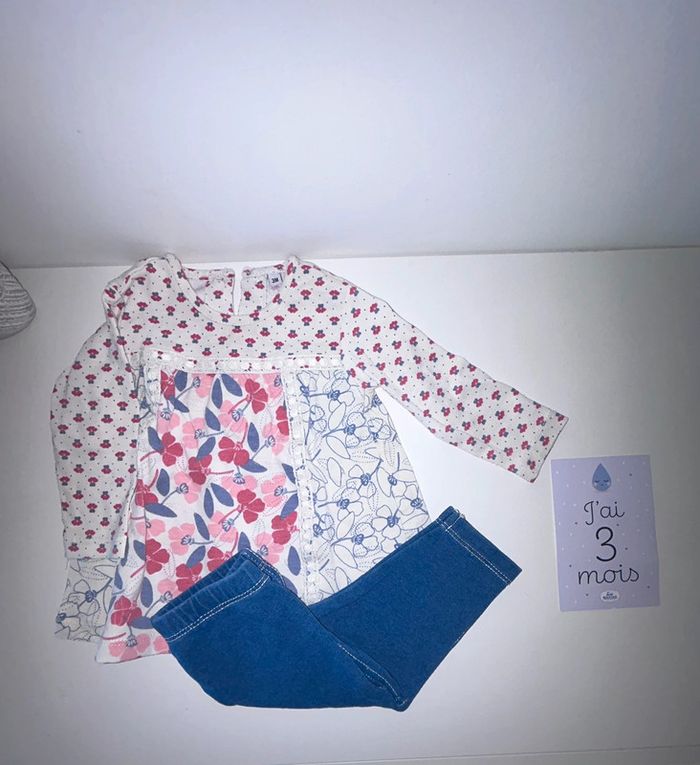 Ensemble composé d’une tunique ( fleurs et dentelle ) avec un legging 3 mois #3moisfillealexiaguillou2206